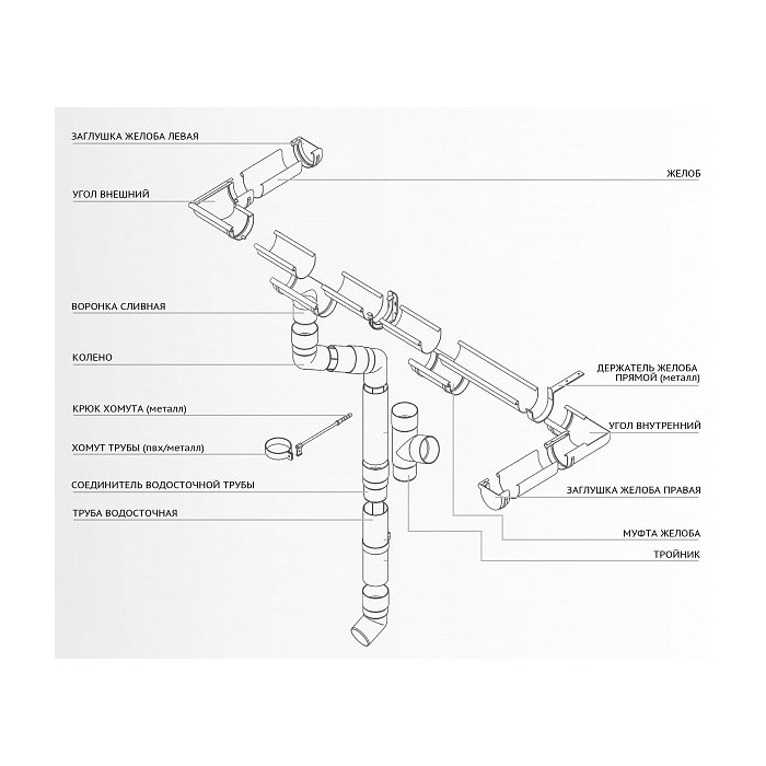 Соединитель желоба в комплекте, сталь, d-150 мм, белый, Aquasystem