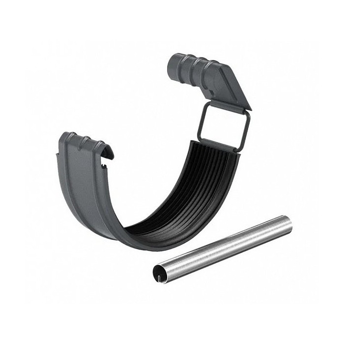 Крюк крепления желоба длинный с комплектом крепления, сталь, l-140, d-125 мм, темно-серый, Aquasystem