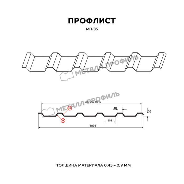 Профилированный лист МП-35х1035-A (ПЭ_Д-01-7024-0,45)